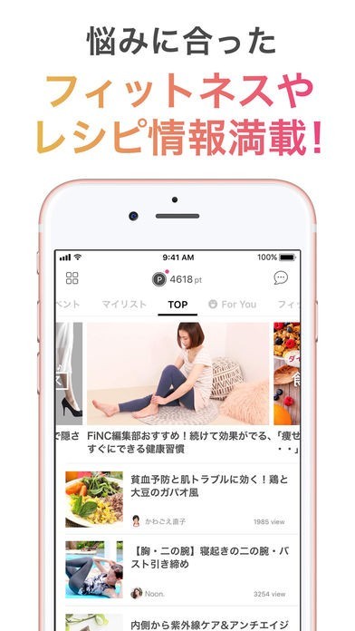 筋トレなどの記事を読んだり、アプリつけて日常通り歩くだけでポイントになって健康食品や美容品がポイントで買えて一石二鳥です!