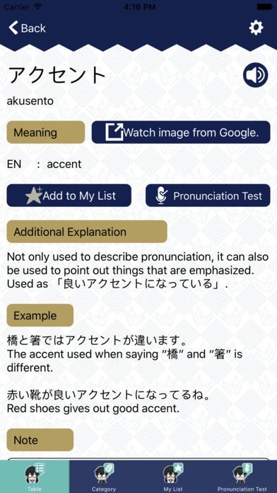 - You can save your favorite words using the My List Function. For words with meanings that are hard to remember, or that you can not pronounce quite well, put them into My List!
