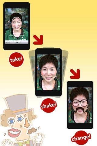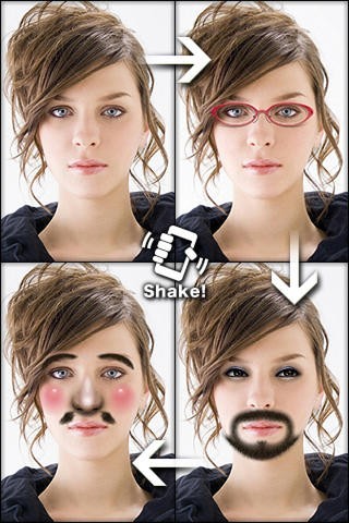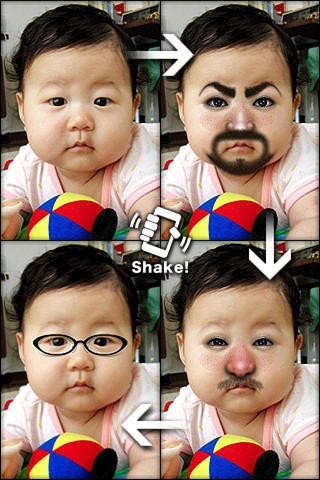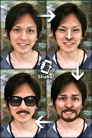 ひげやメガネなど面白メイクがシェイクするたびに変化する!