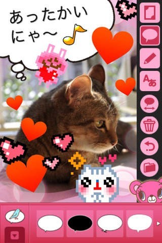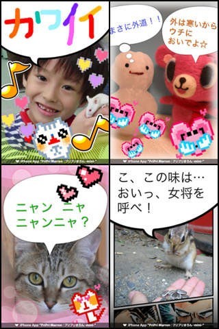 プリプリまろん miniは、写真にスタンプ機能や手書きペンで吹き出しを入れて楽しめるアプリ