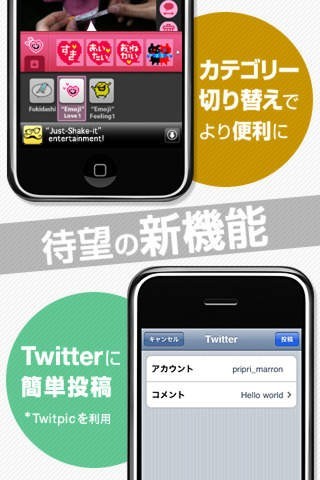 共有機能でTwitterに対応しており、完成した画像にコメントを加えて簡単投稿