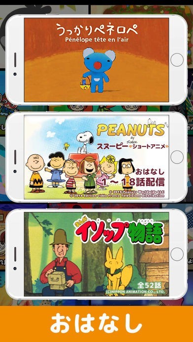 小さな子供向けのおはなし機能は、アニメを見たり童話の読み聞かせなど好きなものだけを選択して見れる