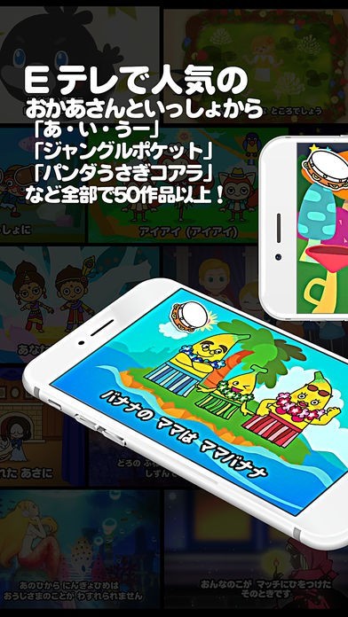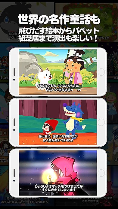 0歳から5歳までの子どもが楽しめる絵本がアプリでアニメーションとして見られます。0歳から2歳まではリズムに合わせて楽器を鳴らして遊べ、3歳から5歳はアニメに合わせてひらがなやカタカナを覚えることができます。