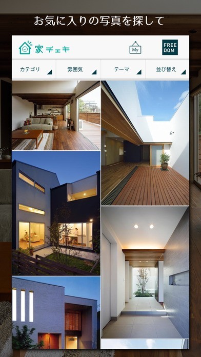 家を建てたい方に役立つ便利アプリ「家チェキ」 家の外観や内観、デザインについての写真を多数配信し、インテリアの写真などもチェックできるのが嬉しいポイントでしょう。 理想の家を追及するためのマイボード機能を搭載しており、素敵な家の写真を集めることができるようになっています。 また、「建築家に相談する」機能が用意されているのもこのアプリならではの特徴。 どんな家を建てたいかが決まったら建築家に相談することで、より具体的なプランを進めることができます。