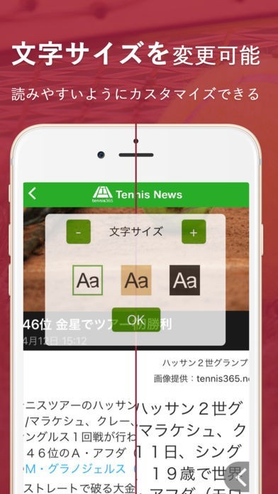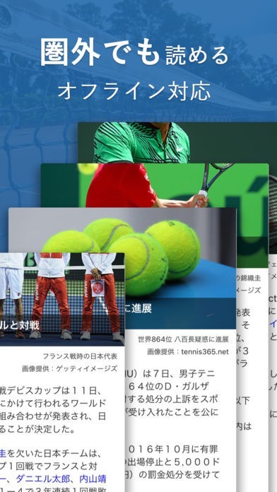 「テニスニュース」は、テニスに特化したニュースアプリとして、最新情報や大会情報などを手軽にチェックできる機能を用意しています。ランキング機能からはユーザーに人気の記事を素早く確認可能。開催中の大会についての話題や、人気選手に関連した最新ニュースにも気軽に触れることができるでしょう。オフライン機能も充実しており、ネット環境が無い場所で利用できるのも嬉しいポイントです。じっくり読みたい記事はあらかじめダウンロードしておけば、環境を気にすることなく閲覧することができます。また、文字サイズの変更機能も搭載。自分の好みに合わせて文字サイズを調整しながら、記事を楽しめるようになっています。