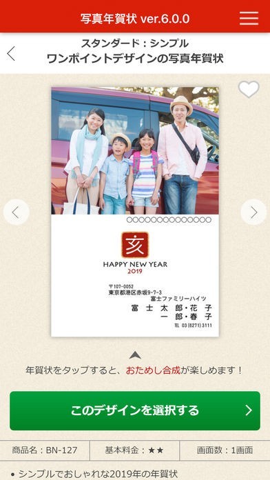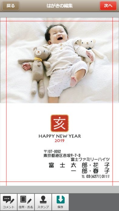 フジカラーの写真年賀状2019(富士フイルム公式アプリ)のスクリーンショット