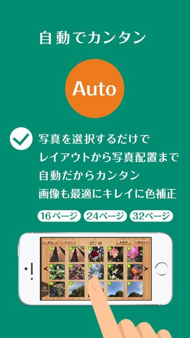 フォトブックを作ったことがない方、携帯の操作が苦手な方も安心の簡単でシンプルな操作方法でフォトブックを作ることができます。写真を選択し、ページを選ぶ打kで自動でプロ並みのフォトブックが作れます。