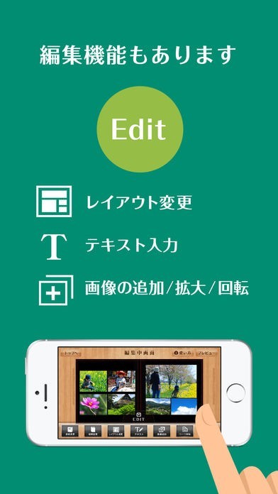 編集機能を使ってレイアウトやテキスト変更、写真の追加削除も自由自在