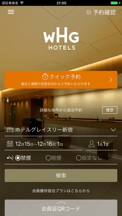 ワシントンホテルやホテルグレイスリーを展開するホテルグループWHGの公式アプリ