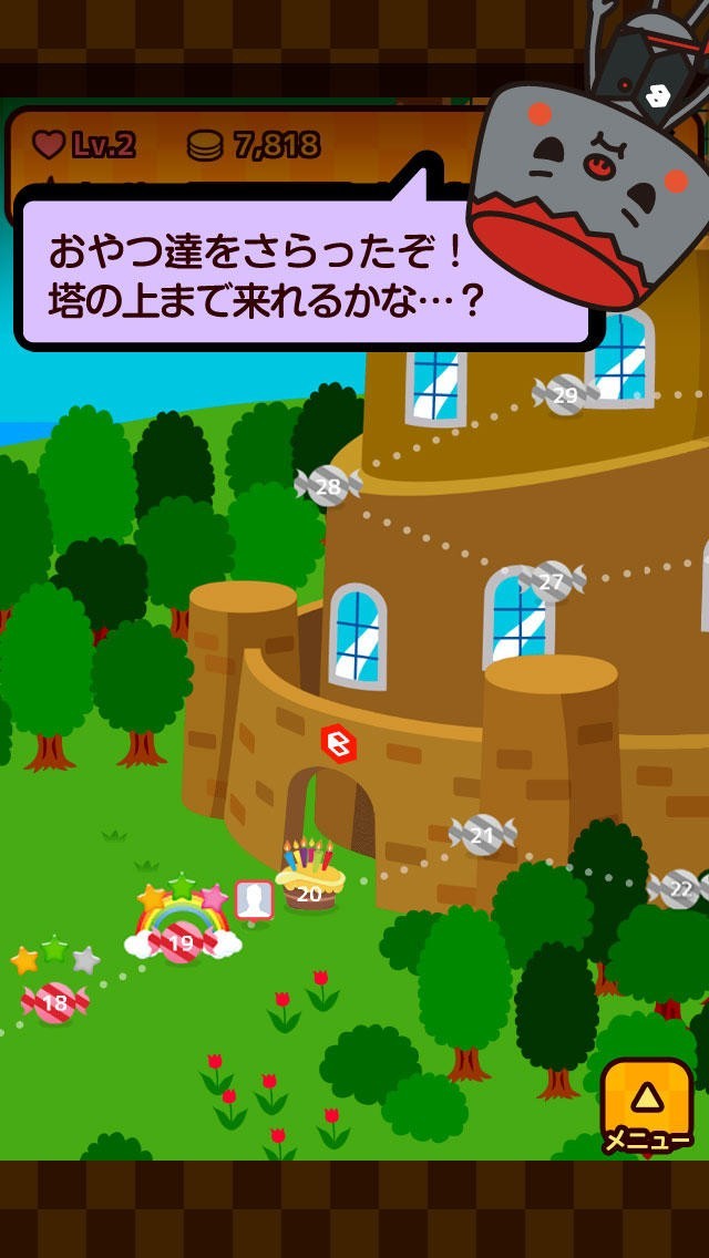 ブラックタワーを攻め落とし、とらわれたよいおやつを全員救出する事が目的だよ。