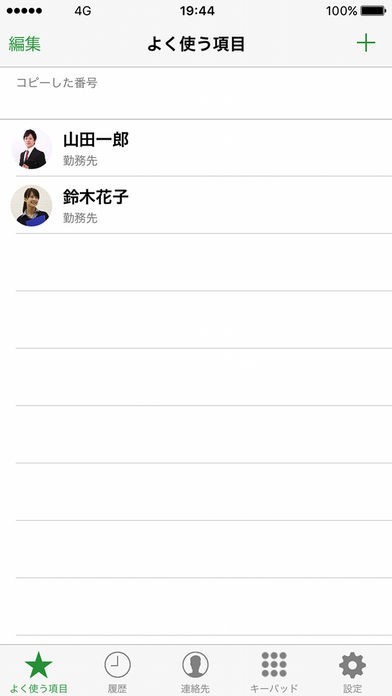 一度発信した番号は連絡先に自動登録。2回目からは連絡先をタップするだけで発信が可能