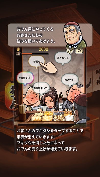 プレイヤーが経営する小さなおでん屋さんの屋台にやってくるお客さんたちのグチを集めていくと、そこに集まる人々のストーリーがゆっくりと展開されていき、意外な結末にたどり着きます。
