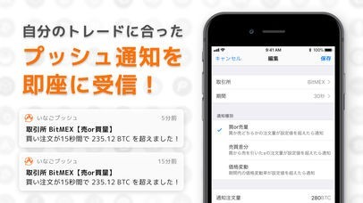 App Storeより引用いなごプッシュは、ビットコインの大きな値動きを監視・通知するためのツールです。