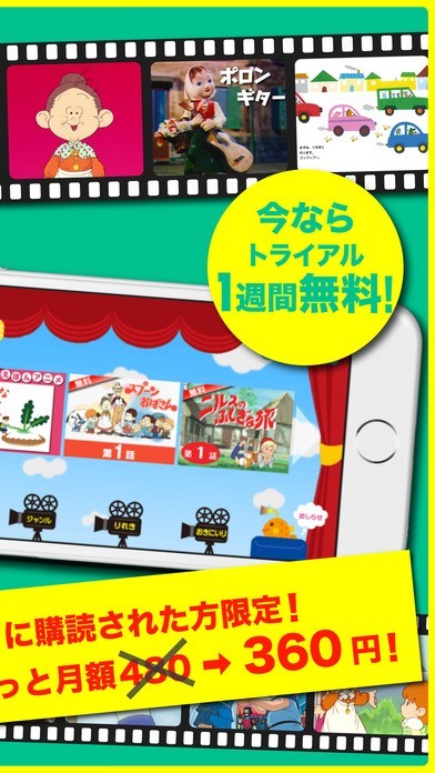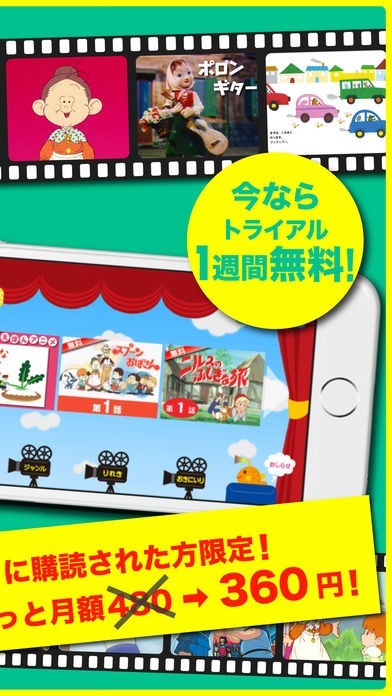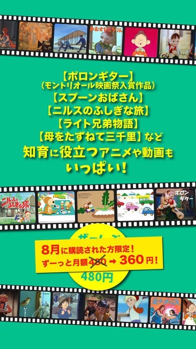 「えほんアニメ」は学研が提供するアニメを閲覧できるアプリです。毎月新作をかかさず更新、定番の名作昔話から偉人の伝記まで、様々な動画を楽しめます。スマホを横にかたむければ、画面いっぱいにアニメが広がる!日本語とは別に英語の音声で再生することも可能、ネイティブな発音で聴くことできます。さらに、ジャンルから探せる機能や履歴もあり!お気に入りに登録すれば、好きな動画を探すことなく視聴できます。最初の1週間のみ無料で見放題、自動更新の前に解除の手続きをおこなえばお金はかかりません。
