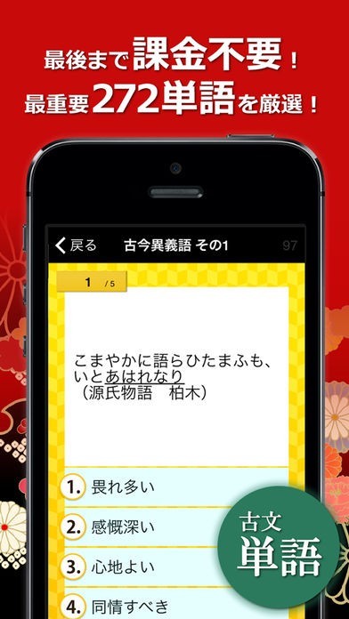 漢文や古文の頻出単語が学べるアプリ。通学時の移動時間に使える