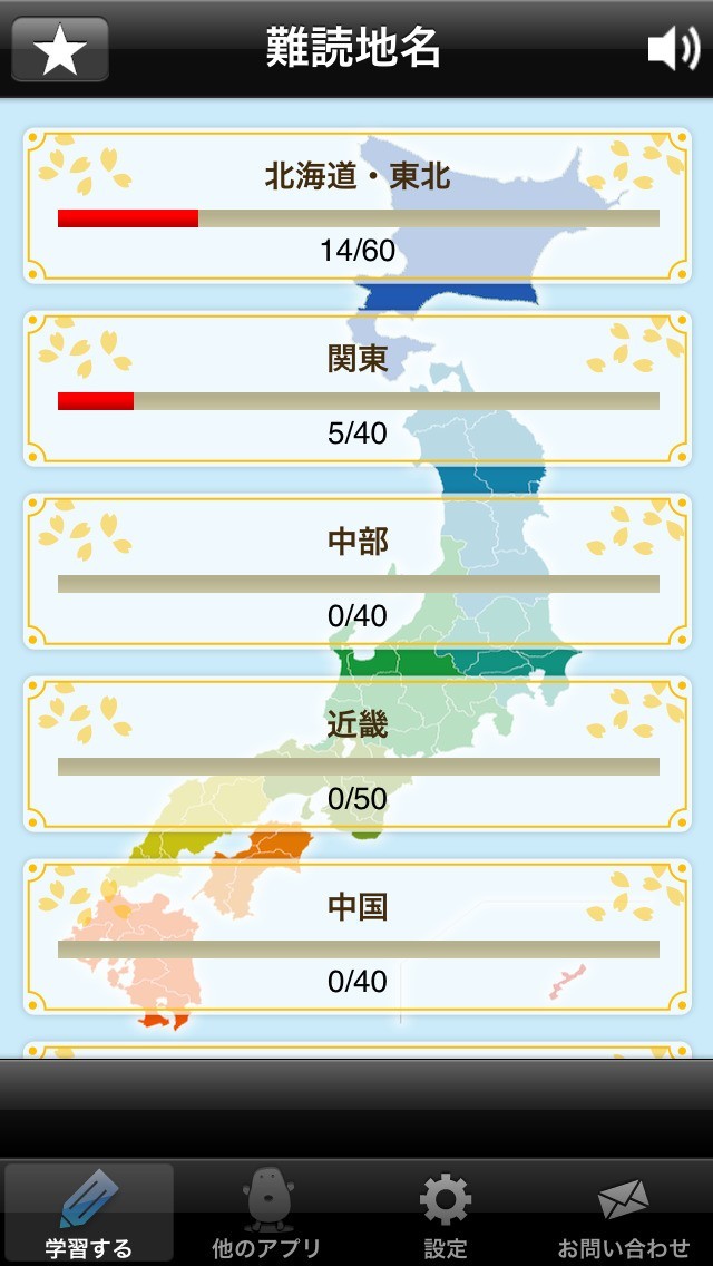 日本全国の難読地名がたくさん収録されており、クイズ問題を通して解くことができるアプリ!