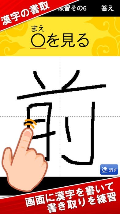複数の練習問題が収録されていて、カテゴリー別に漢字が勉強出来るようになっています。また文字の手書きに対応しているので、書き順や画数を把握したい時にも役立ちます。