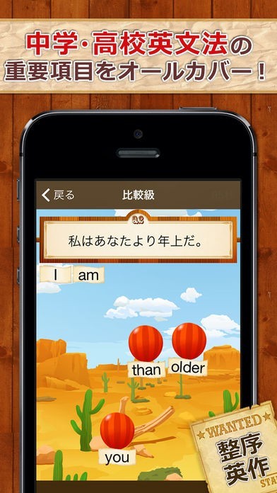 風船の早打ちをするゲームで英文法を作っていくという単純でありながら爽快感を味わえるアプリです。中学高校の英文法が網羅されており、5回反復学習するように構成されているのでやればやる程英文力が付くアプリです。