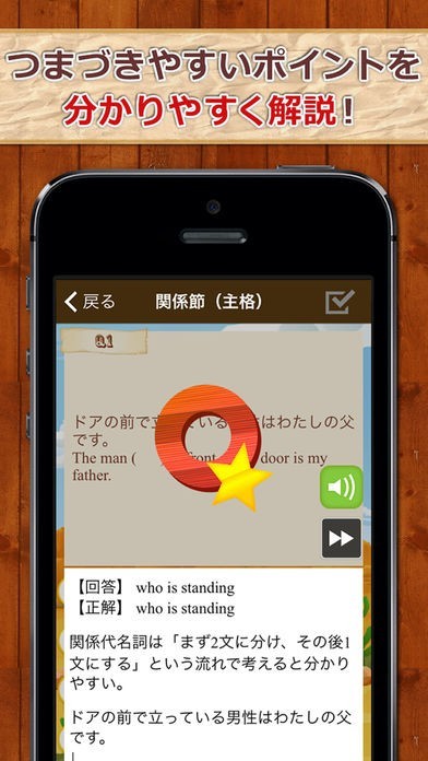 中学高校で学習する英文法を、風船を早打ちして英文を完成させるという単純明快でありながら、いつの間にか英文法を覚えることができる学習アプリです。問題は1500問用意されており、ネイティブの発音を聞くことができるのでリスニング力も高まります。反復学習ができる仕組みになっているので、やればやる程力がつきます。問題には整序英作や空所補充、スペル入力の3形式で学習でき、問題には解説もついているのでしっかりと英文法を学ぶことができるアプリです。通学時間や休み時間などの隙間時間を使って英文法をマスターしましょう。