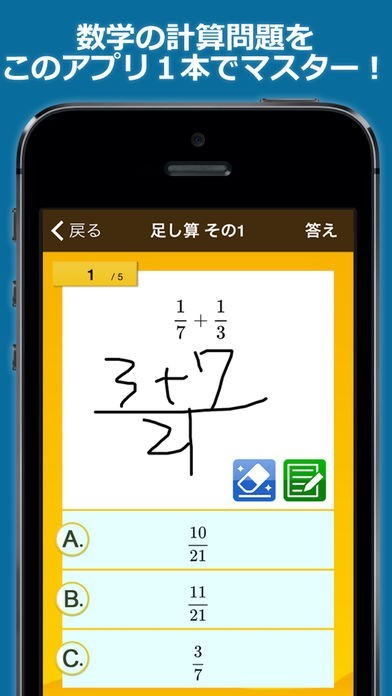 スマートフォンを使って数学検定3級から7級の問題にチャレンジすることができるアプリとなっていて、図形問題や文章問題を含んだ1700問以上の問題に挑戦することができます。