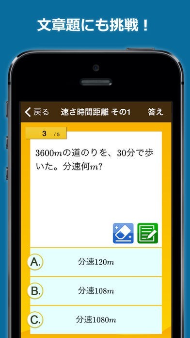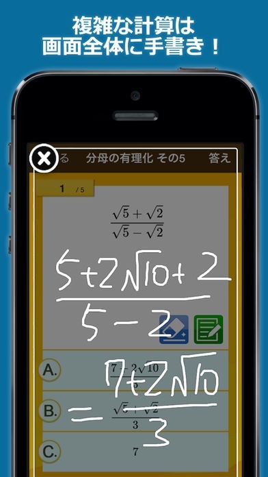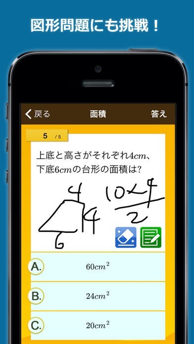 問題画面に手書きでメモをすることができるようになっているので、難しい計算問題などは手書きのメモを使って式を考えながら正しい回答を導きだすことが可能となっています。