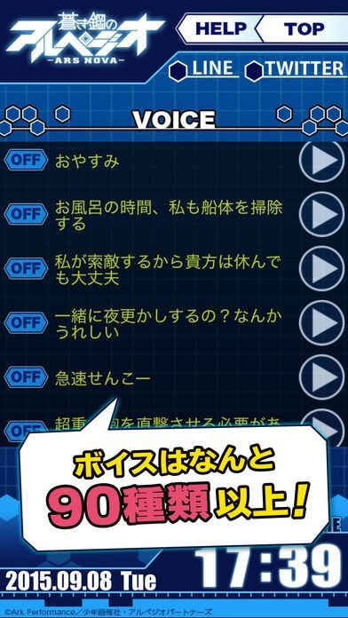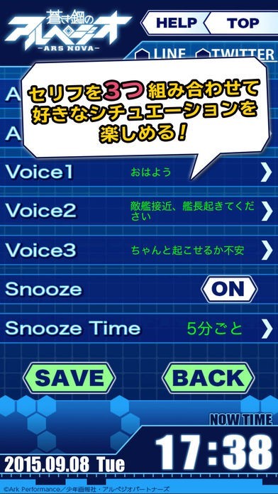 蒼き鋼のアルペジオ -アルス・ノヴァ‐ イオナアラームではアラームでのボイスを選ぶ際、番号からなどではなく、文字で書かれたセリフから選択できるのでわかりやすくなっています。