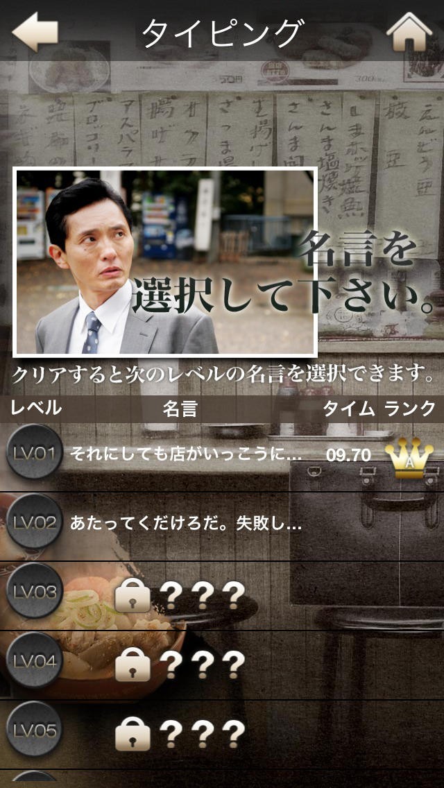 孤独のグルメに登場する名言をタイピングして遊ぶことができるアプリ!