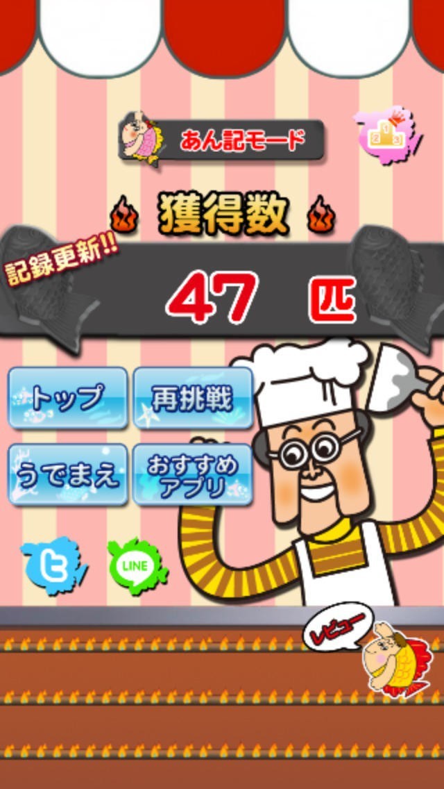 「たいムアタック」と「あん記モード」のうでまえを確認することができます。一流のたいやき名人を目指してまいにち!まいにち!プレイしてどんどんうでまえをあげて行こう!