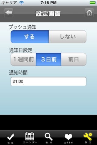 プッシュ通知を3日前や1週間前に変更出来る!複数のイベントも管理しやすい!