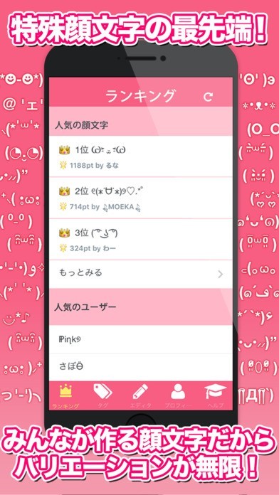 小学生から大学生までの方々に向いていて、顔文字をランキング形式で表示してくれるので流行のものを使える
