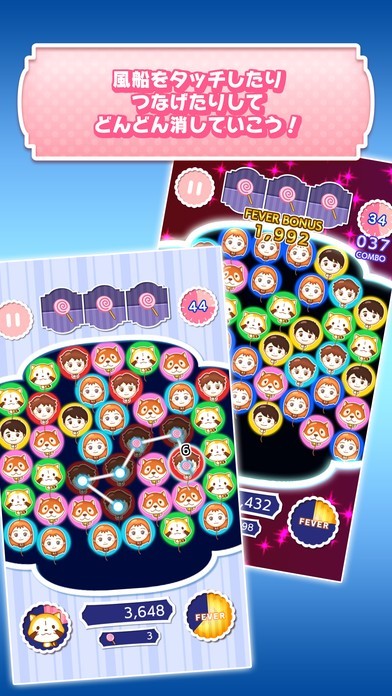 ルールは風船の「ふわ」1つタッチするか、同じ「ふわ」を2つ以上つなげるだけ!マイキャラのふわをねらえば必殺スキルで大量得点ゲット!