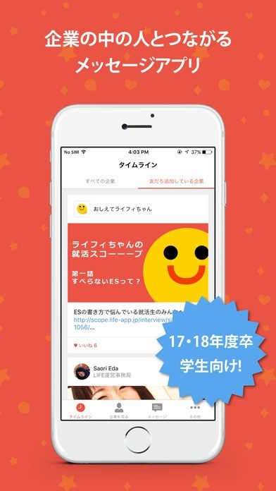 LIFE - 企業の中の人とつながる就活メッセージアプリ -のスクリーンショット
