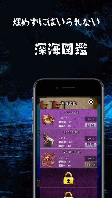 「しんかいぶつ」は実在する深海生物達をタップ操作でどんどん潰していく新感覚の放置カジュアルゲームで、生き物を図鑑で集めながらプレイヤーのステータスを上げていくアプリとなっています。獲得した魚は名前とその特徴を一覧で確認していく事が出来ますし、多彩なアイテムを「お店」から入手していけるのが機能の魅力でしょう。またクリオネやダイオウイカといった話題の深海生物がどんどん登場するので、深海世界のグラフィックとアニメーションを余すことなく体感出来るのが特徴です。
