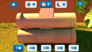 「時間ボタン」を押せば、朝・夕方・夜とシーンが変化します。