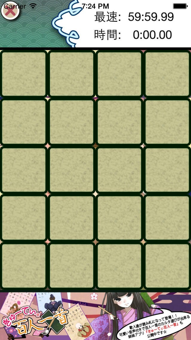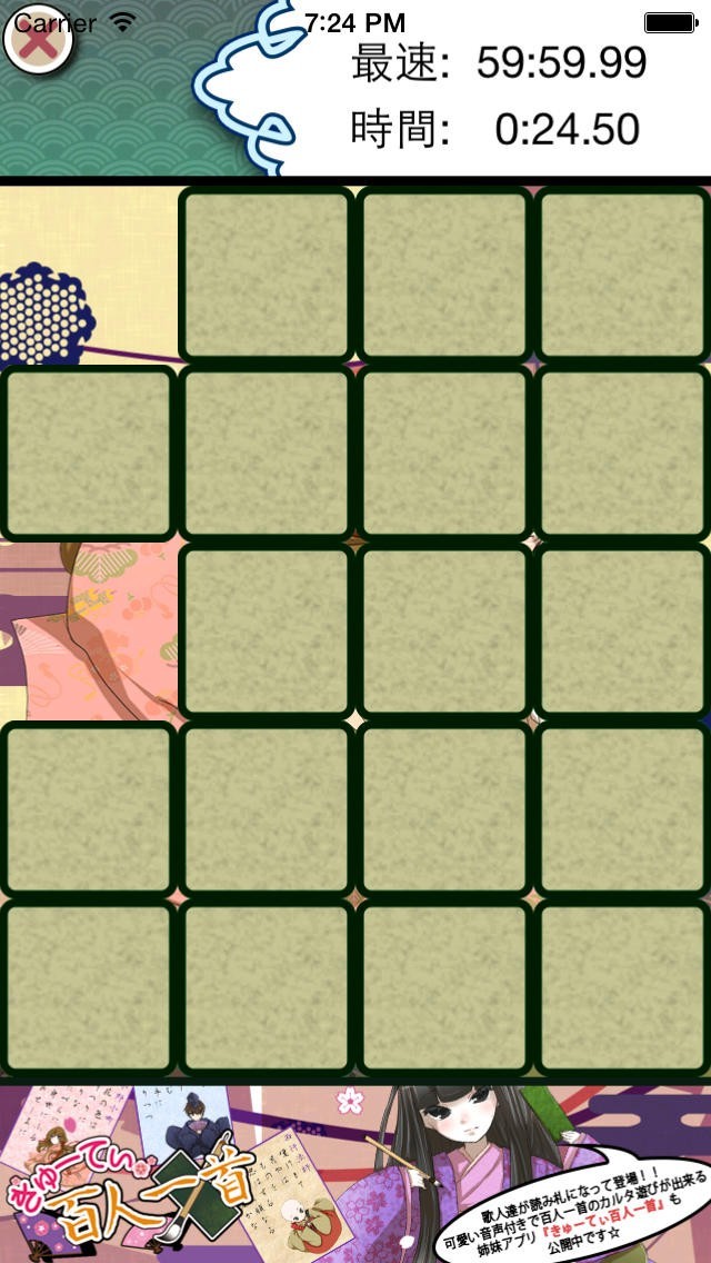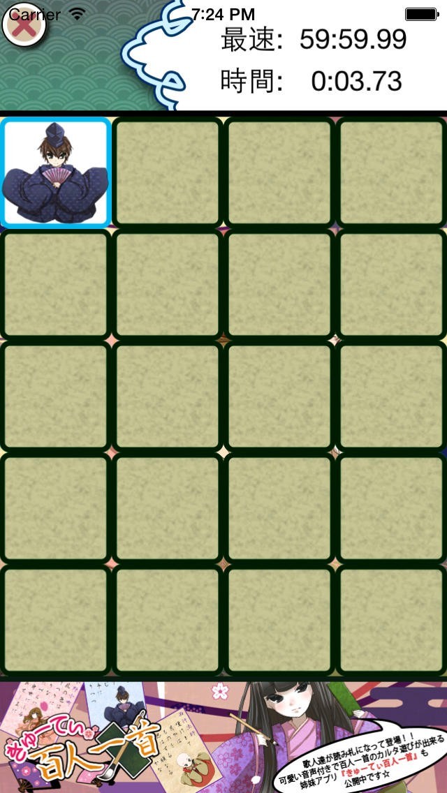 トランプでおなじみの神経衰弱を百人一首のキャラクターで再現したアプリ!