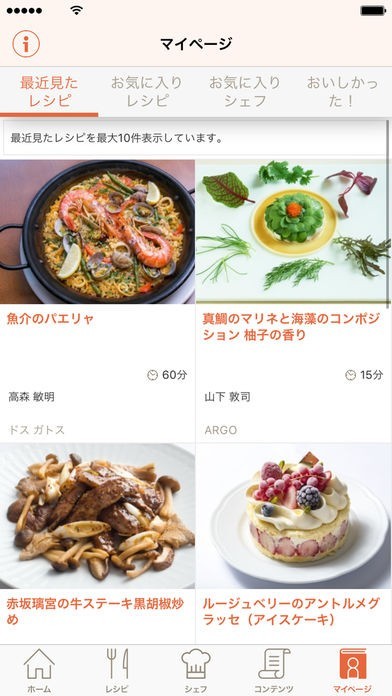 マイページ機能搭載。最近見たレシピやお気に入りレシピも手軽に閲覧可能!