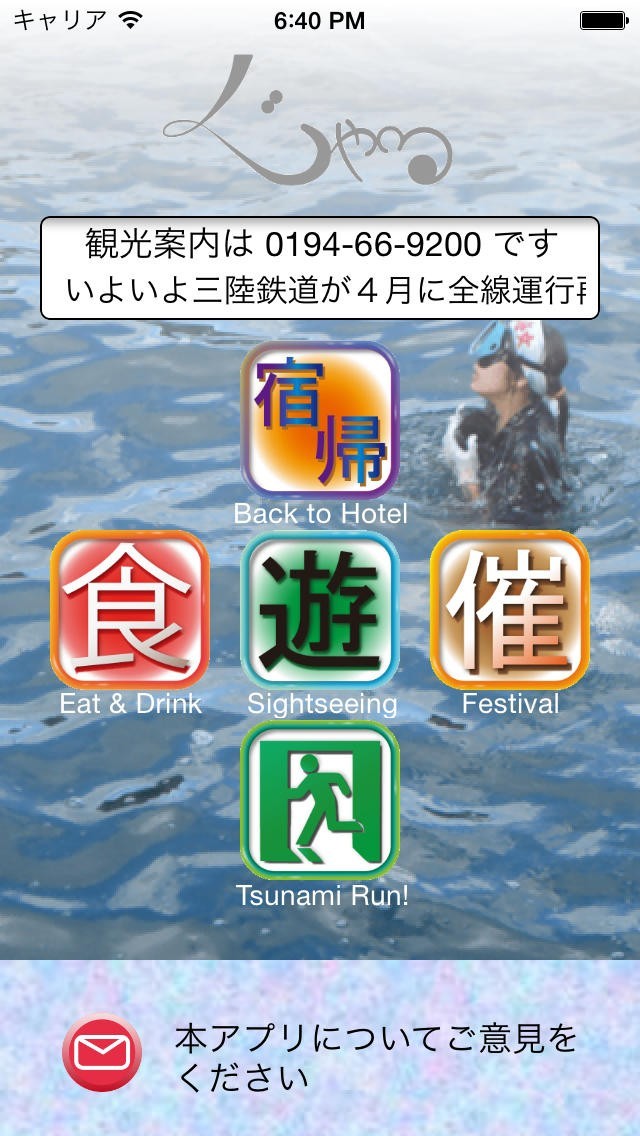 「くじゃる」は久慈市や岩手大学等様々な関係箇所が共同開発している、岩手県久慈市の観光・防災アプリです。 観光情報としては、食べ飲み処や有名観光地、また宿泊箇所が掲載されています。住所や営業時間、電話番号等細かい情報が掲載されているので、ガイドブックとして利用できます。 防災情報としては、津波の危険がある際に自動的にマップが表示されて、安全な箇所まで誘導してくれる様になっています。 岩手県久慈市に観光に行く際にはこのアプリさえあれば、幅広く楽しめる上に万が一危険があっても安心です。