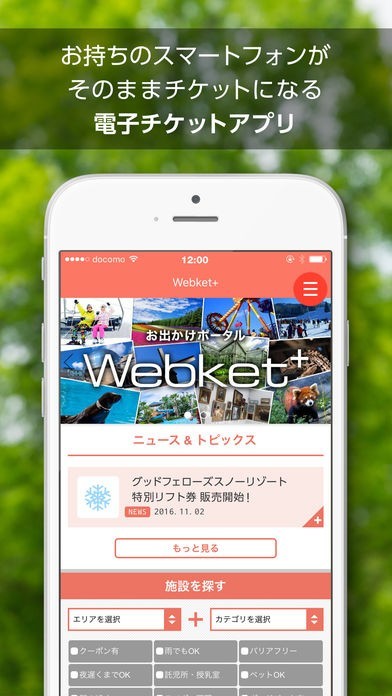 Webketでチケット購入の際、ご使用方法で「電子チケット」を選択すると、このアプリにて電子チケットがご利用いただけます。