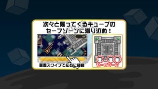 「キューブマン」は襲い掛かってくる様々な形状をしたキューブから主人公キャラクターであるキューブマンを操ってよけながらひたすら前へ進んでいくシンプルアクションゲームアプリです。画面を左右にスライド操作することで移動することが出来るようになっているので、タイミングを計りながら上手に操作してキューブにぶつからないように誘導してあげる必要があります。キューブに当たってしまうとその場でゲームオーバーになってしまい、どれくらい進み続けることが出来たかによってスコアを獲得することが出来ます。ゲームセンター機能で世界中のユーザーとスコアを競い合うこともできます。