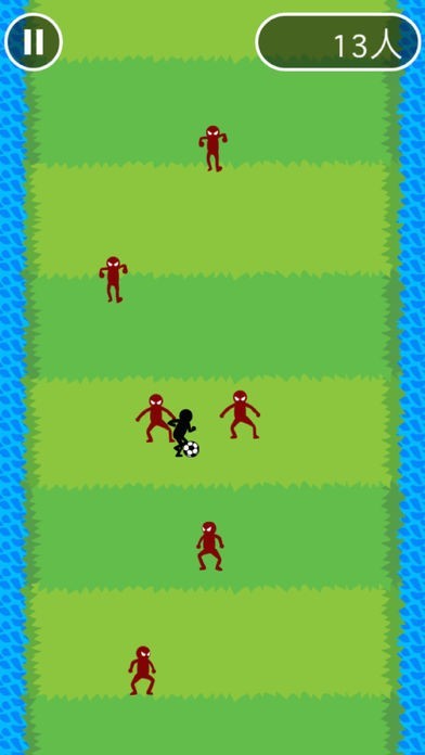 サッカーのドリブルで、画面をタッチして敵をどんどん抜いたりよけたりする