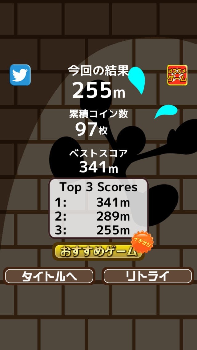 リズミカルなタップでセンター寄りの位置をキープしよう!コインが貯まればコンティニューもできる!