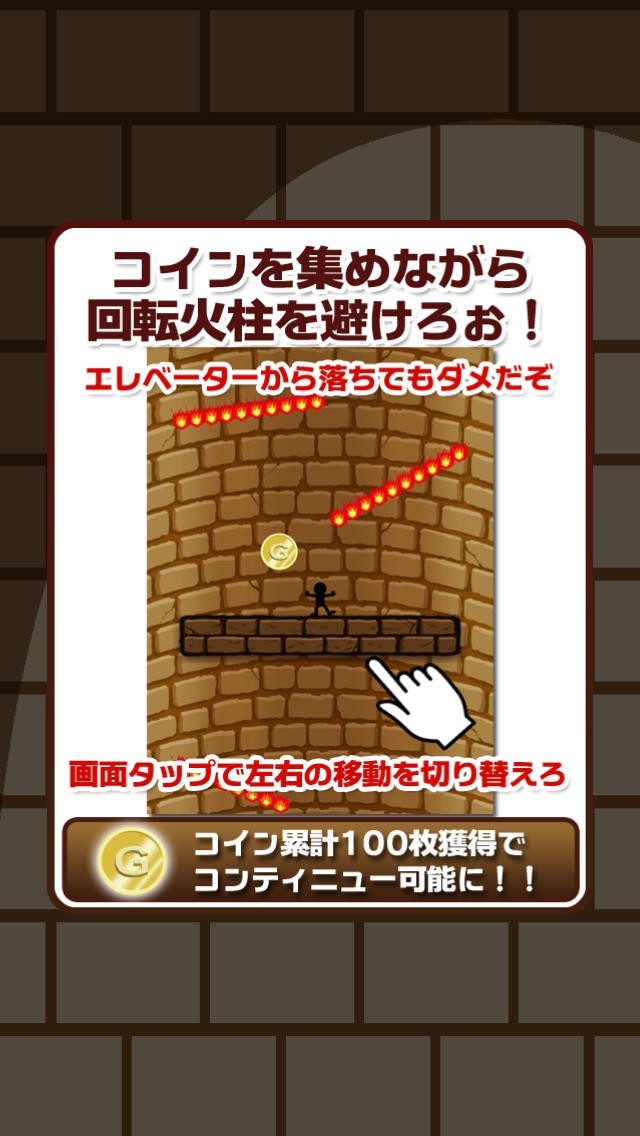 画面上をタップするのみ!火の玉をかいくぐりながら、エレベーターを進むアプリ