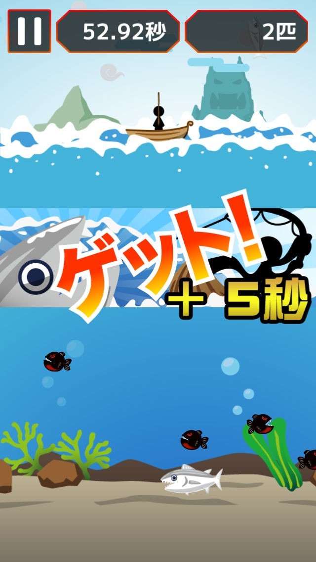 3回連続でミスなく釣るとボーナスで5秒加算されます。