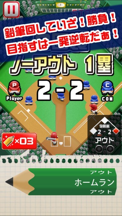 App Storeより引用懐かしい!!えんぴつ野球でサヨナラ勝ちだぁ!
