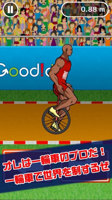 右と左の矢印が描かれたたった二つのボタンを使って操作を行います。一輪車はバランスが崩れてしまうのが特徴でもあるため小まめに左右のボタンをタップして前に進みましょう。