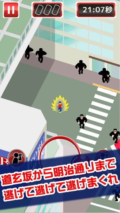 渋谷で鬼ごっこDXは、渋谷を舞台にスーツ姿の男たちが鬼となって、鬼ごっこをします。コントローラーを使って、渋谷の街を縦横無尽に駆け回わりながら、鬼から逃げていきます。鬼に捕まるとゲームオーバーです。大人向けの鬼ごっこで、鬼の数が多くスリルを楽しめストレス解消になります。 無敵機能があります。アイテムのエナジードリンクを使って発動すると、一定時間は無敵となります。アイテムは3つまで確保できるので、有効に使ってできるだけ長く逃げ切れるように工夫します。短時間で遊べるので、暇つぶしになります。