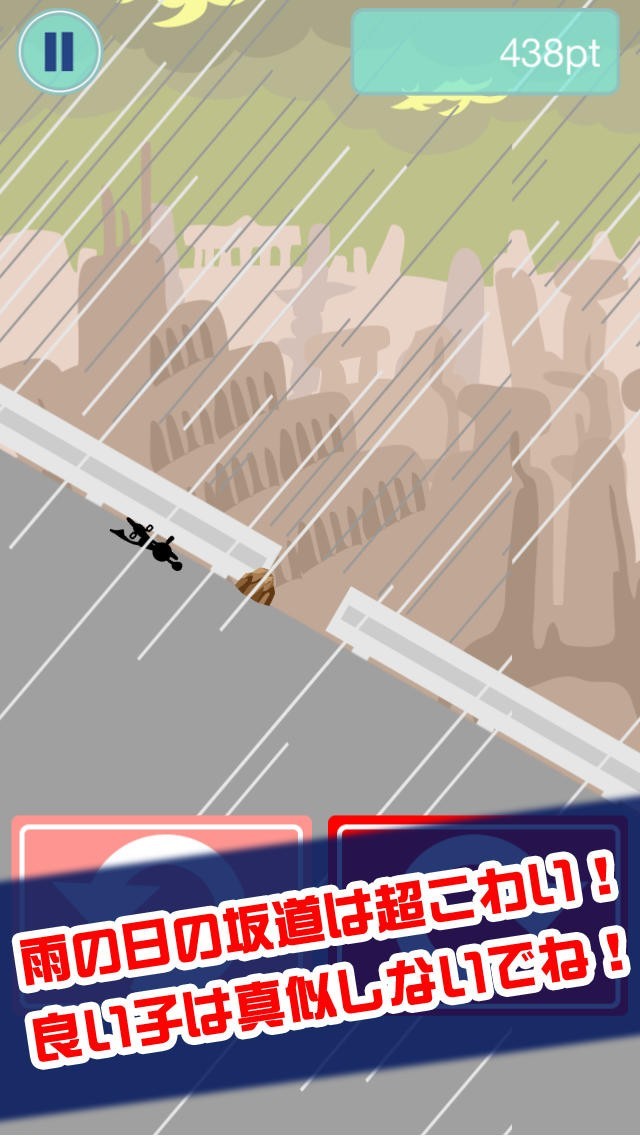 左右回転ボタンでバランスをとりながら坂道を下ります。