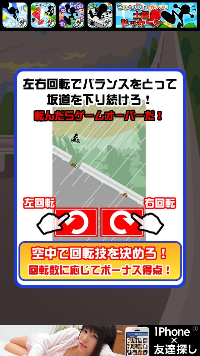 App Storeより引用爆走チャリで坂道を下れぇぇ!!