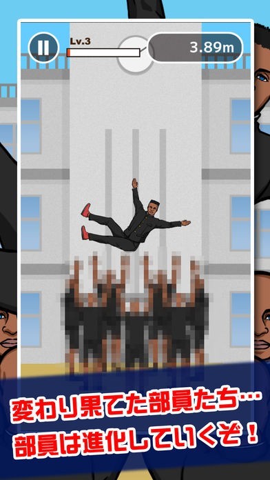 このゲームは胴上げの到達高度を競い合うという内容のいわゆる「バカゲー」です。落ちてきた男にタイミングを合わせてタップするだけの簡単操作ですが、何百メートルもの高さに到達する胴上げは爽快感もあり、そのシュールさもあいまってストレス解消にもおすすめです。