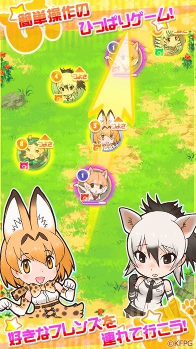 敵キャラクターに向かって味方を引っ張って当てる爽快バトルを楽しむことができるようになっていて、フレンズごとに異なる技を繰り出して有利に進めることが可能になっています。